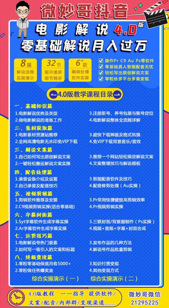 【全网最全电影解说视频课程】微妙哥抖音电影解说4.0教程 零基础7天学会解说月入过万