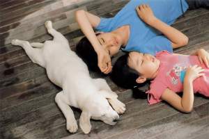 妹妹很喜欢这只狗