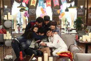 设计部女孩们给孙小飞塞满了零食